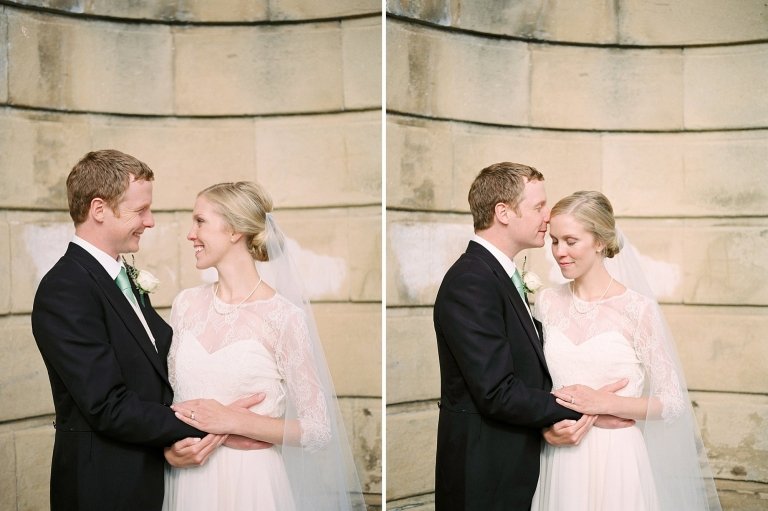 Caitlin looked so graceful and elegant in her stunning dress by Truvelle. A refined, almond chiffon gown with a removable lace shirt, finished with a sparkly ribbon belt. Caitlin wore a lace-edged, classic tulle veil, it seemed like she glided as she walked. The bridesmaids wore beautiful, flowing dresses in a flattering shade of green.