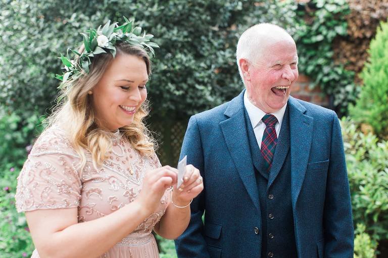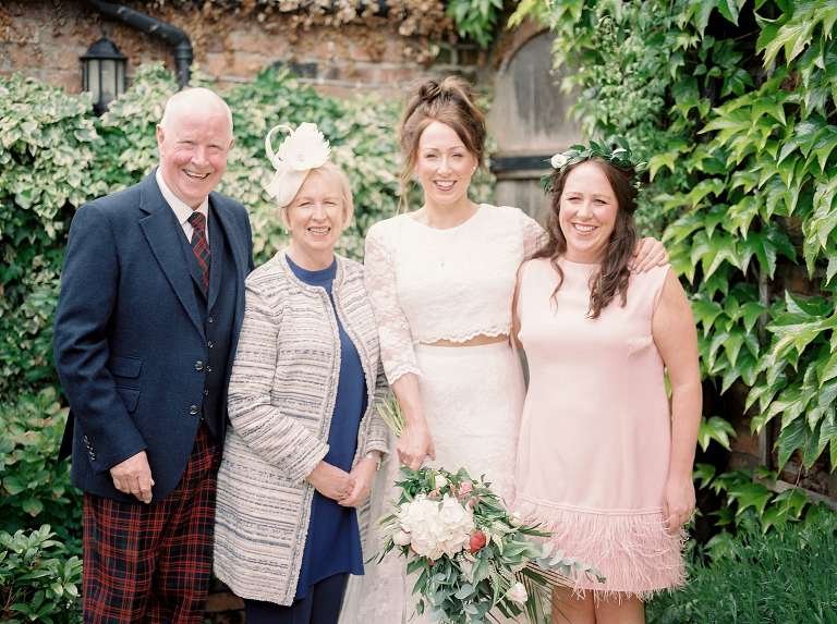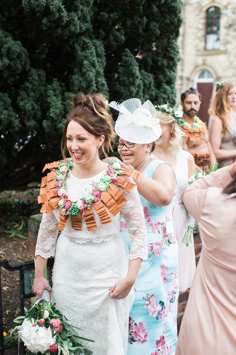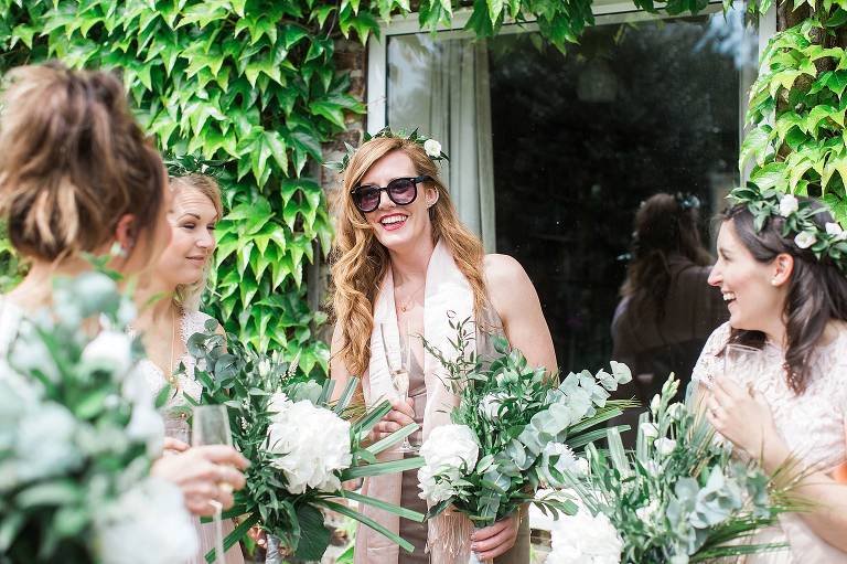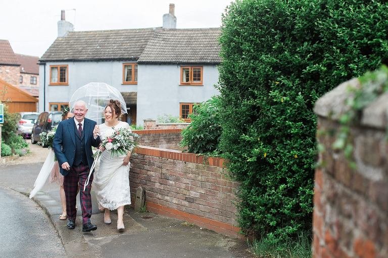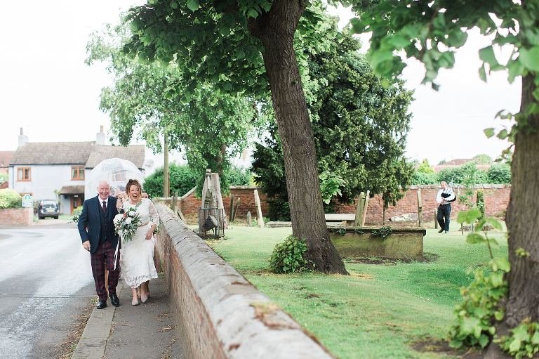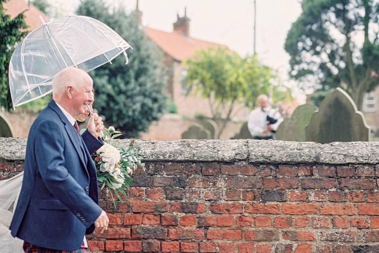 Lois got ready at her parents home with her bridesmaids, and there was such a relaxed vibe. She wore a Charlie Brear two-pice, and looked so beautiful. She then walked the short trip to get to the ceremony. Just as the wedding party were arriving at the church the heavens opened. A quick stop to put up the umbrellas and all was well.