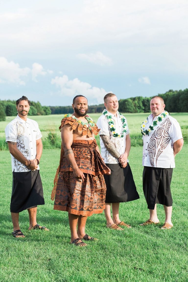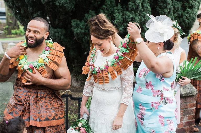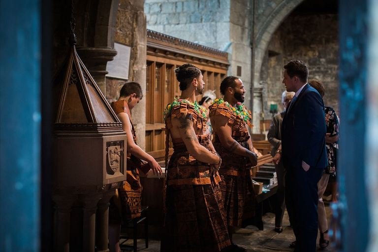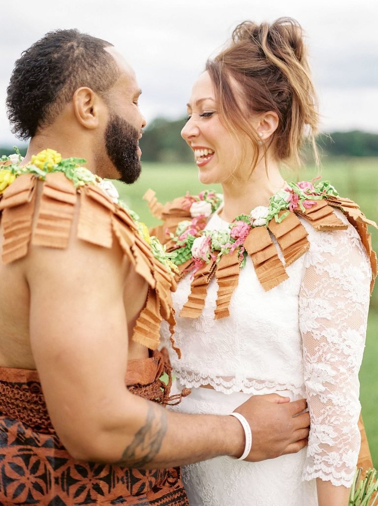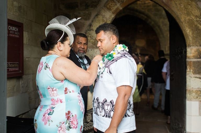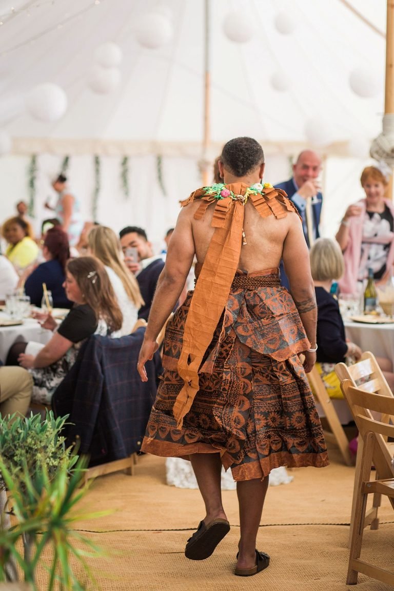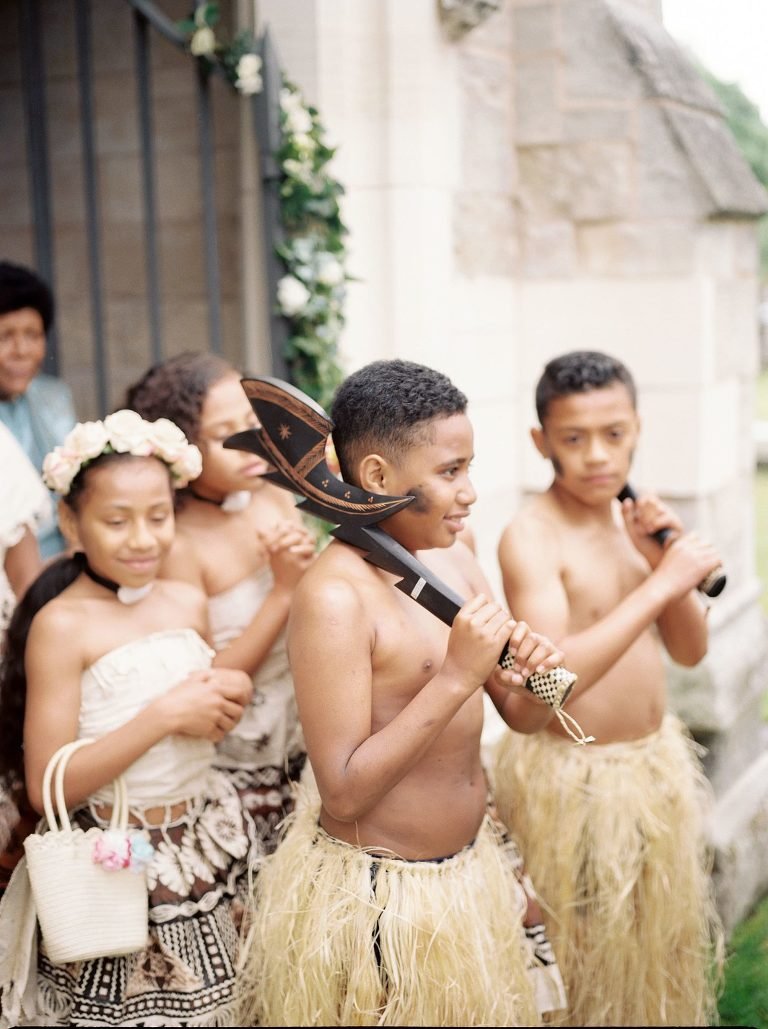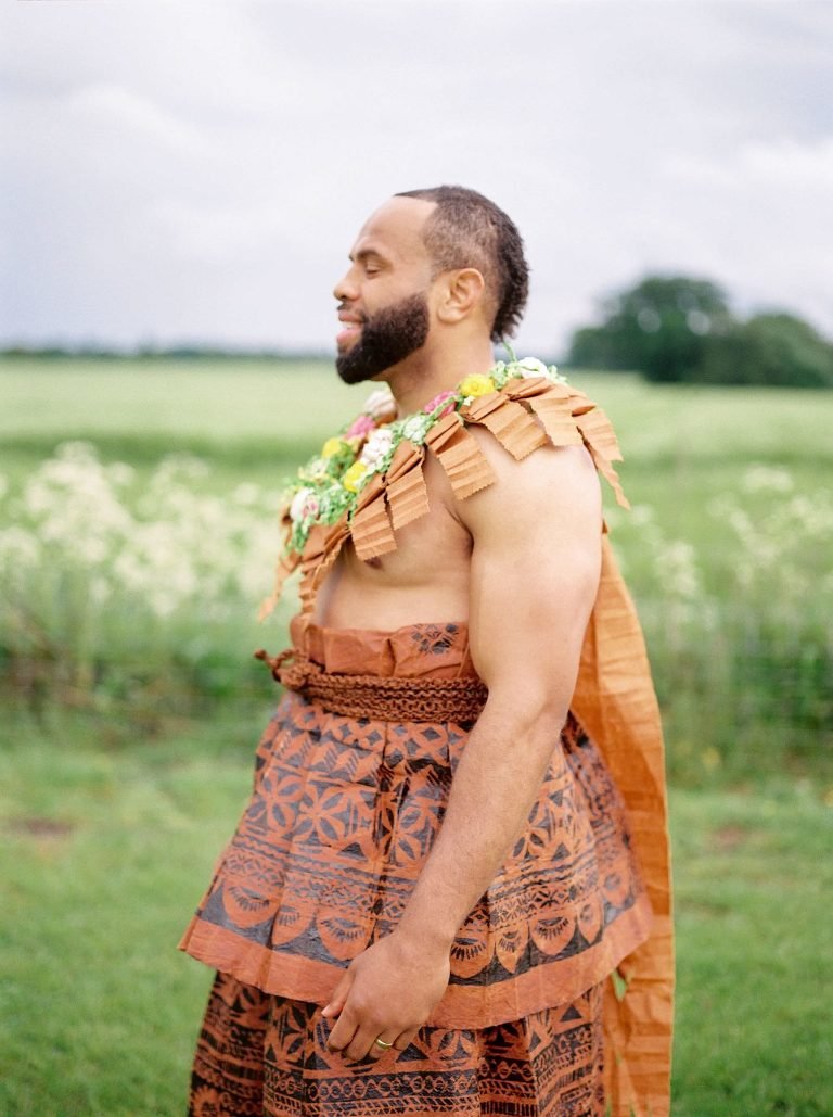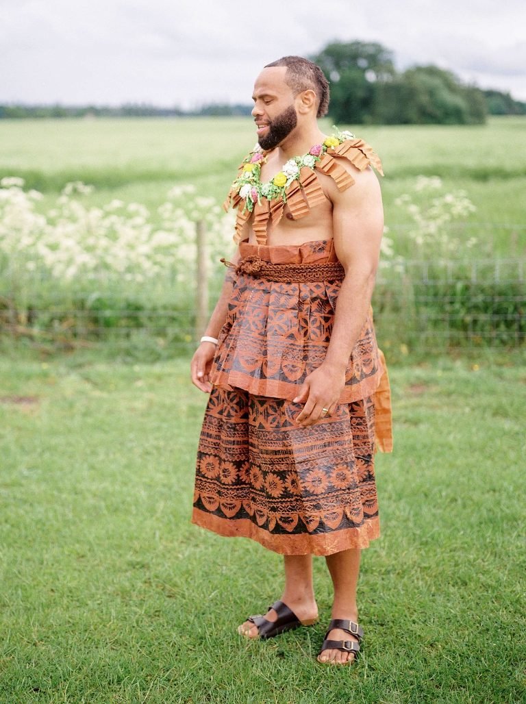 Tomasi wore a traditional Fijian wedding outfit made by his mother in Fiji , and looked really cool.