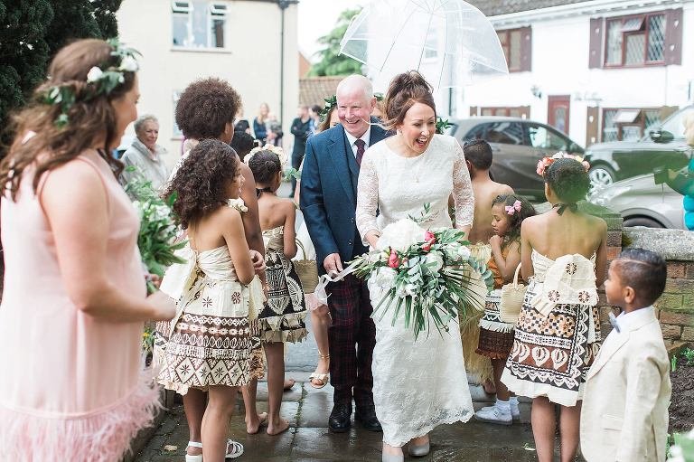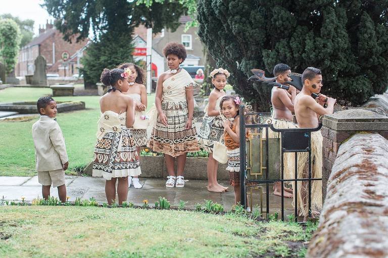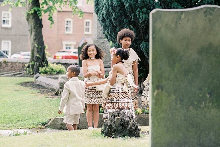 The ceremony took place at their local church in Wistow. The ceremony area was decorated with Fijian rugs, which was a perfect fusion of Fijian custom and English church ceremony. The ceremony began with several beautiful readings from friends and family, and finished with the couple walking back down the aisle with huge smiles. It was a wonderful ceremony, full of so much love and lots of cheer.