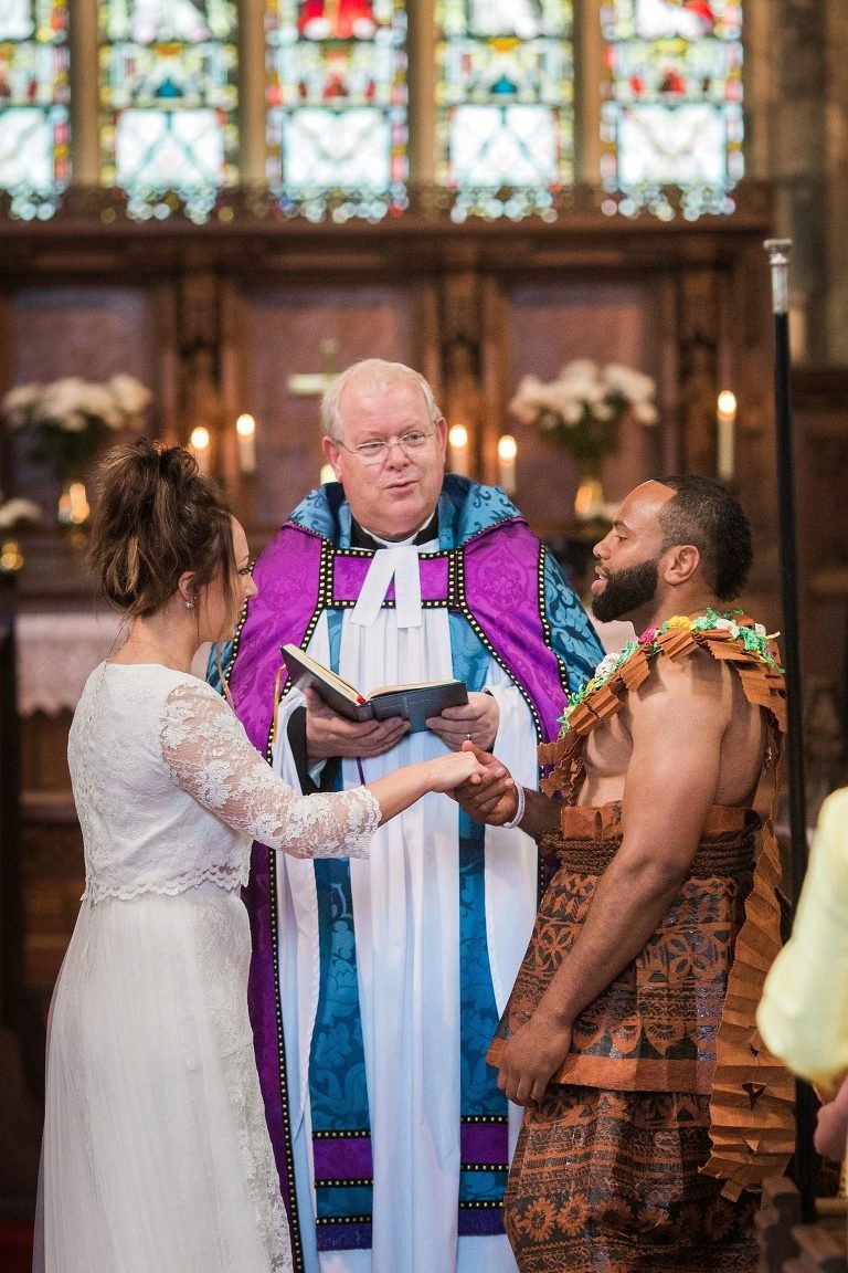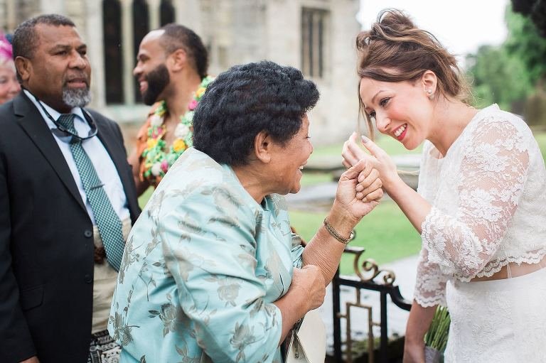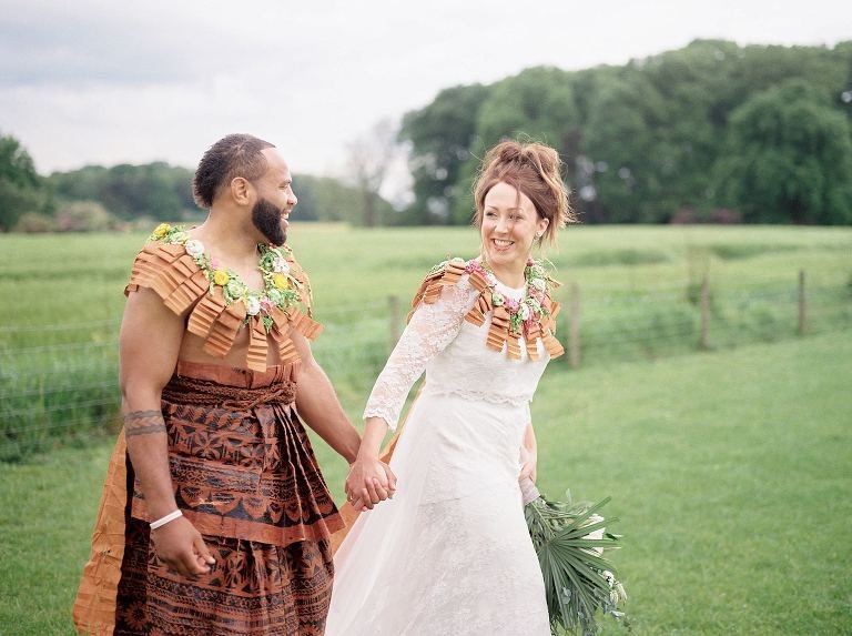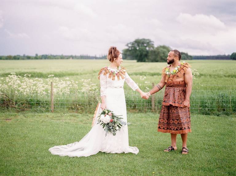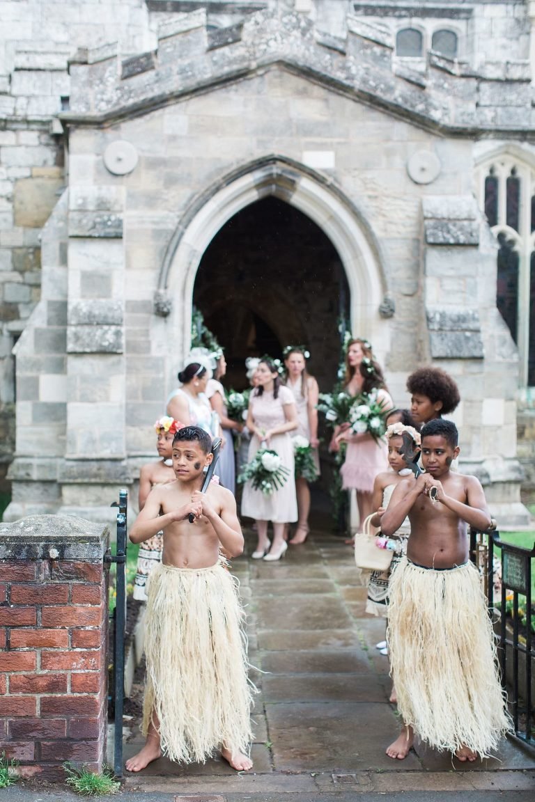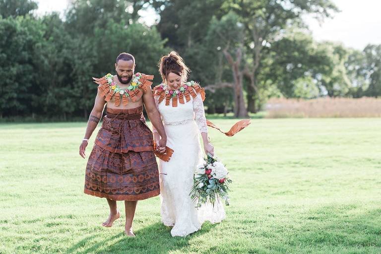 Lois and Tomasi got married at the local church and held their reception at Escrick Park, Yorkshire, in spring. It was a brilliant marquee wedding, with Fijian influences and lots of cake. The couple had chosen to embrace their Fijian and English heritage and blend it together in a marvellous Yorkshire English Fijian wedding day.